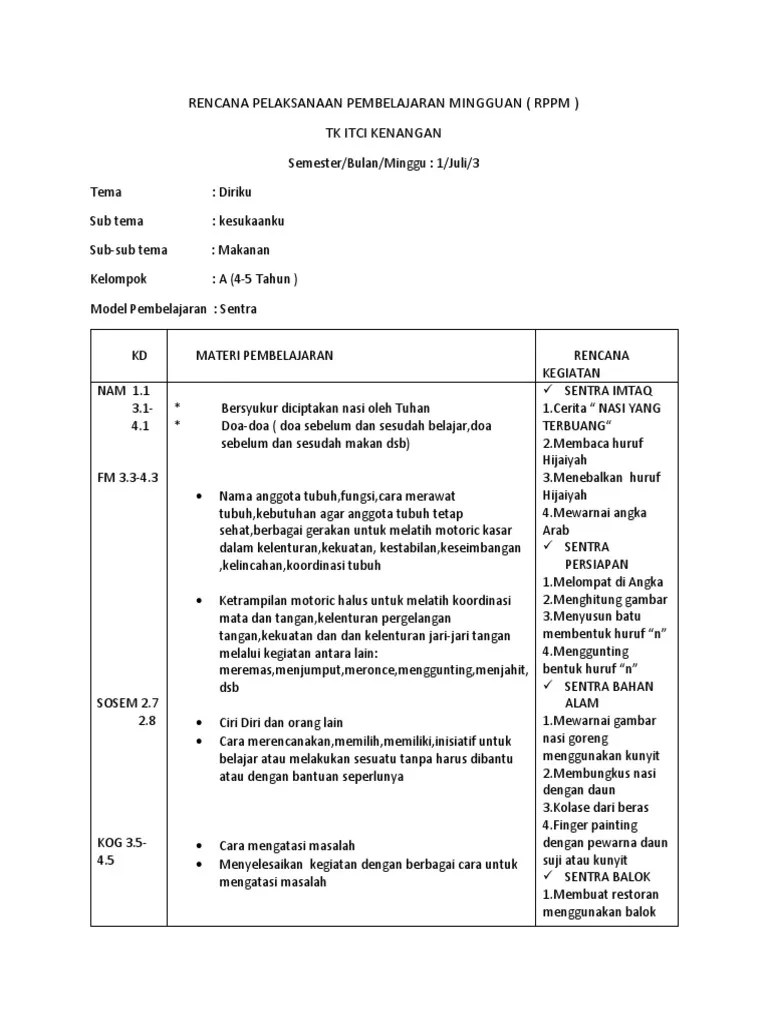 Rencana program pembelajaran harian (rpph) model kelompok dengan pengaman. Contoh rkh x2f rpph paud tema diri sendiri tubuhku kurikulum 2013. Dalam rpph tk tema tersebut menggunakan format deskripsi model yang terbaru berdasarkan kurikulum 2013 sesuai standar nasional paud. Diriku / identitas diri / nama. Berdiskusi cara menyayangi diri sendiri. Berikut ini contoh rpph : Rencana pelaksanaan pembelajaran harian (rpph) paud model kelompok . 1.2 menghargai diri sendiri, orang lain dan. Rpph (rencana pelaksanaan pembelajaran harian) model kelompok tema diriku kurikulum 2013 (k13/ kurtilas) ini akan kami bagikan untuk ayah . Contoh rpph paud model kelompok kurikulum 2013. Contoh rpph paud tema diriku atau diri sendiri subtema identitas contoh rpph paud tema. Tema / subtema / sub subtema : Kelompok karena model pembelajaran ini banyak digunakan di paud.